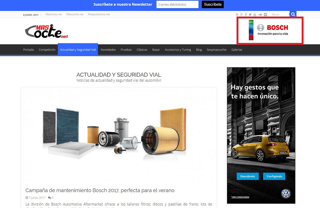 ¿Queréis utilizar un espacio con el que el usuario asocie a vuestra marca? Fichas técnicas, seguridad vial, competición...Espacios destacados en la Home y secciones principales de los sites.